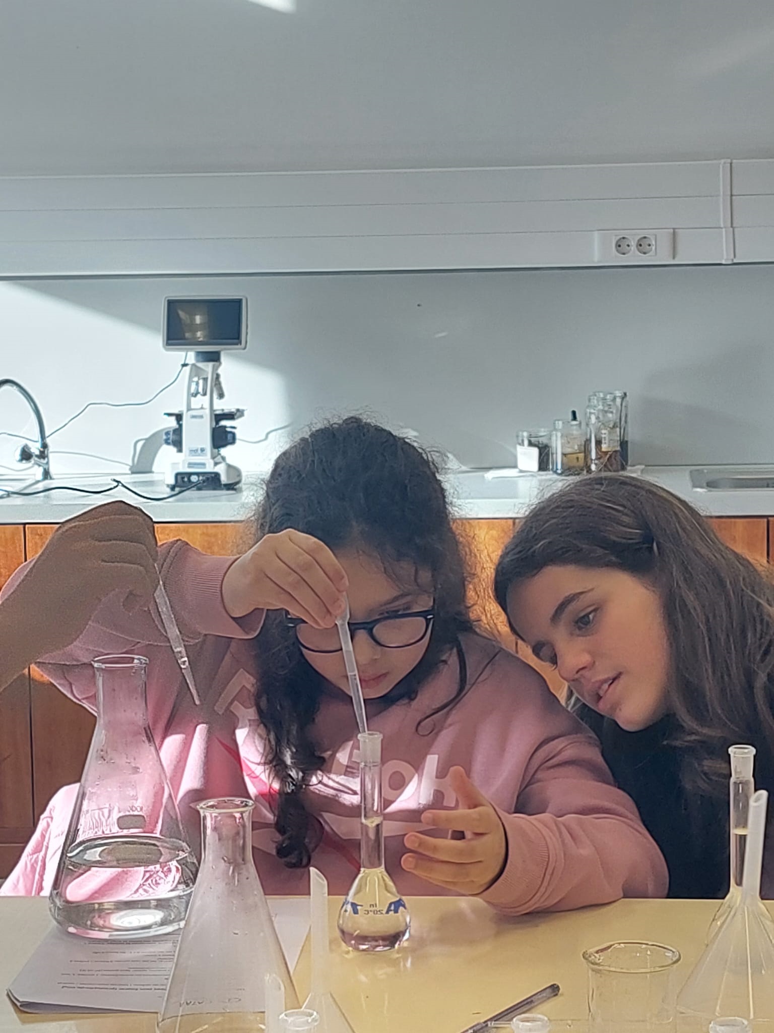 Neste momento, são os alunos da turma 6.º3 que estão a participar na oficina, mostrando grande curiosidade e entusiasmo.