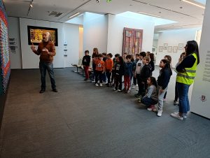 Ao longo de uma visita guiada, os alunos tiveram a oportunidade de explorar dois espaços distintos: o edifício histórico, conhecido como “Solar dos Cavaleiros”, e o edifício contemporâneo, construído no século XXI. Durante o percurso, observaram diversas obras do artista, incluindo cerâmicas, pinturas e azulejos, o que lhes permitiu compreender melhor a diversidade e riqueza da sua produção artística.
