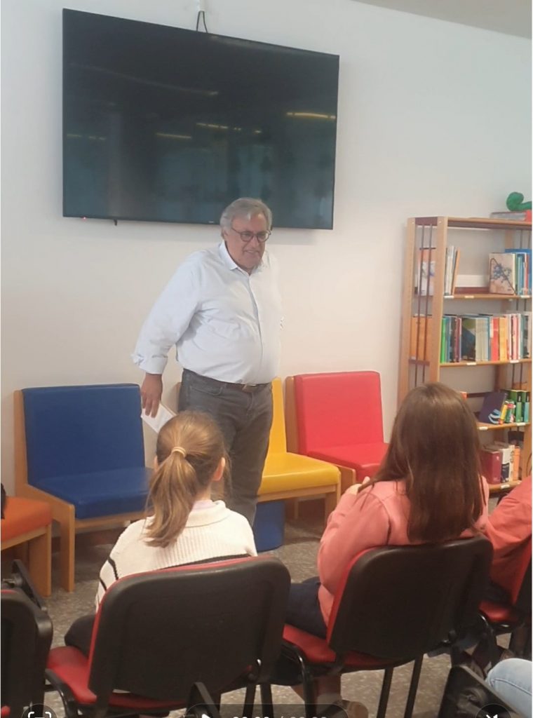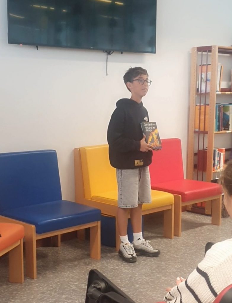 Na Biblioteca Escolar, também houve apresentações de livros e leituras em voz alta, por um aluno do 5.º1 e pelo avô da aluna Matilde Antunes, do 5.º1, que aceitou o convite para apresentar o livro «As aventuras do Menino Nicolau», tendo partilhado com os presentes episódios divertidos e expressivos da obra, cativando os alunos com a sua leitura viva e descontraída. A sessão permitiu aos estudantes descobrir novas formas de contar histórias e reforçou a importância da partilha intergeracional em torno dos livros.
